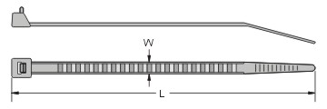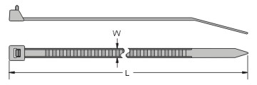 Standard cross section features a curved tip for easy threading and handling. Versatile cable ties can be used in countless applications. One-piece construction for consistent performance and reliability. Lowest threading force of any one-piece cable tie in the industry. Curved tip is easy to pick up from flat surfaces and allows faster initial threading to speed installation